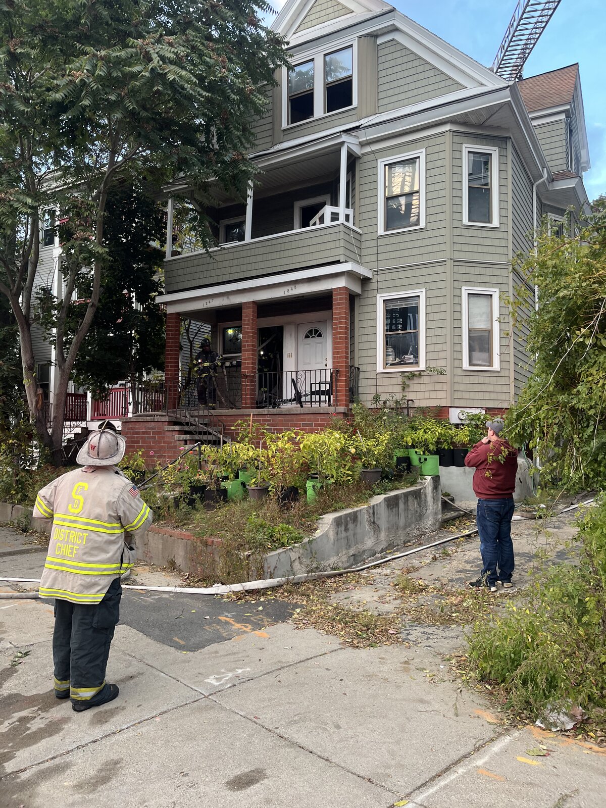 Coming back from a short walk (I work from home usually) on Thursday 10/23/25 I saw a ton of fire vehicles down the road. I thought maybe it was the construction site next door but as I got closer, the depth became clearer and I sprinted ahead. The top floor of the triple decker from which I leased the first floor had a fire. The pictures look almost peaceful and idyllic but just behind me there were 3-5 fire trucks. It was loud and chaotic.