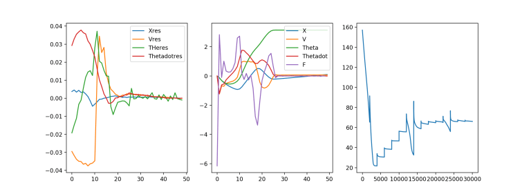 Changed the code a bit to use more variables. Actually trying the cart pole problem now. The results seem plausible. A noisy but balanced dynamical residual around zero. And the force appears to flip it’s direction as the pole crosses the horizontal.